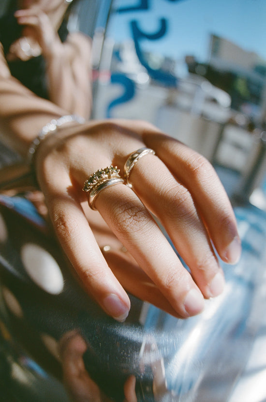 GraceNorsworthyis the jeweller behind Orswo. Currently based in Tāmaki Makaurau, Grace came from a background in Industrial Design, but came to realise that her real passion was working with her hands to design and create jewellery. Each piece is unique, shiny and delicate knuckles interlinked like cells woven amongst the glimmer of polished silver and precious stones.