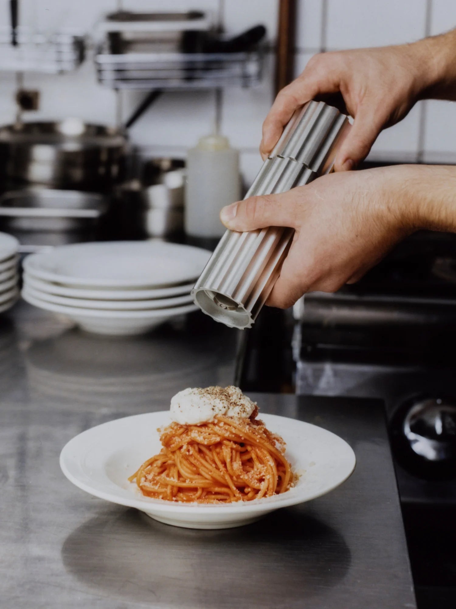 Aluminum Pepper Mill - An essential for any kitchen, the Service Projects Pepper Mill combines craftsmanship with thoughtful design. Milled from a single solid piece of aluminum, it delivers timeless elegance and reliable performance. Fitted with hardened high-carbon stainless steel burrs, it requires minimal effort to produce freshly ground pepper. The grind size is adjustable at the base, offering precise control from fine to coarse to suit any dish. Simple to open and refill, this pepper mill is crafted to perform for decades to come.