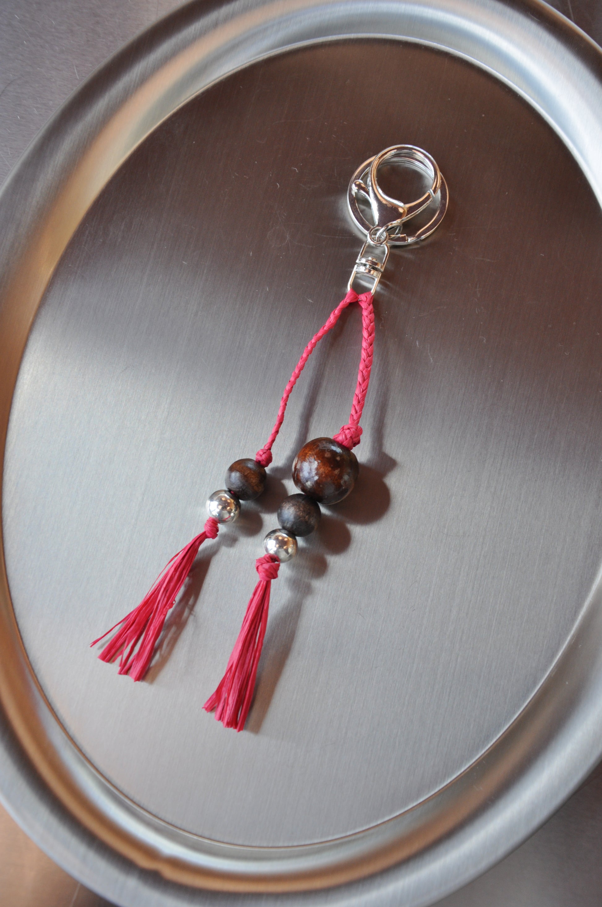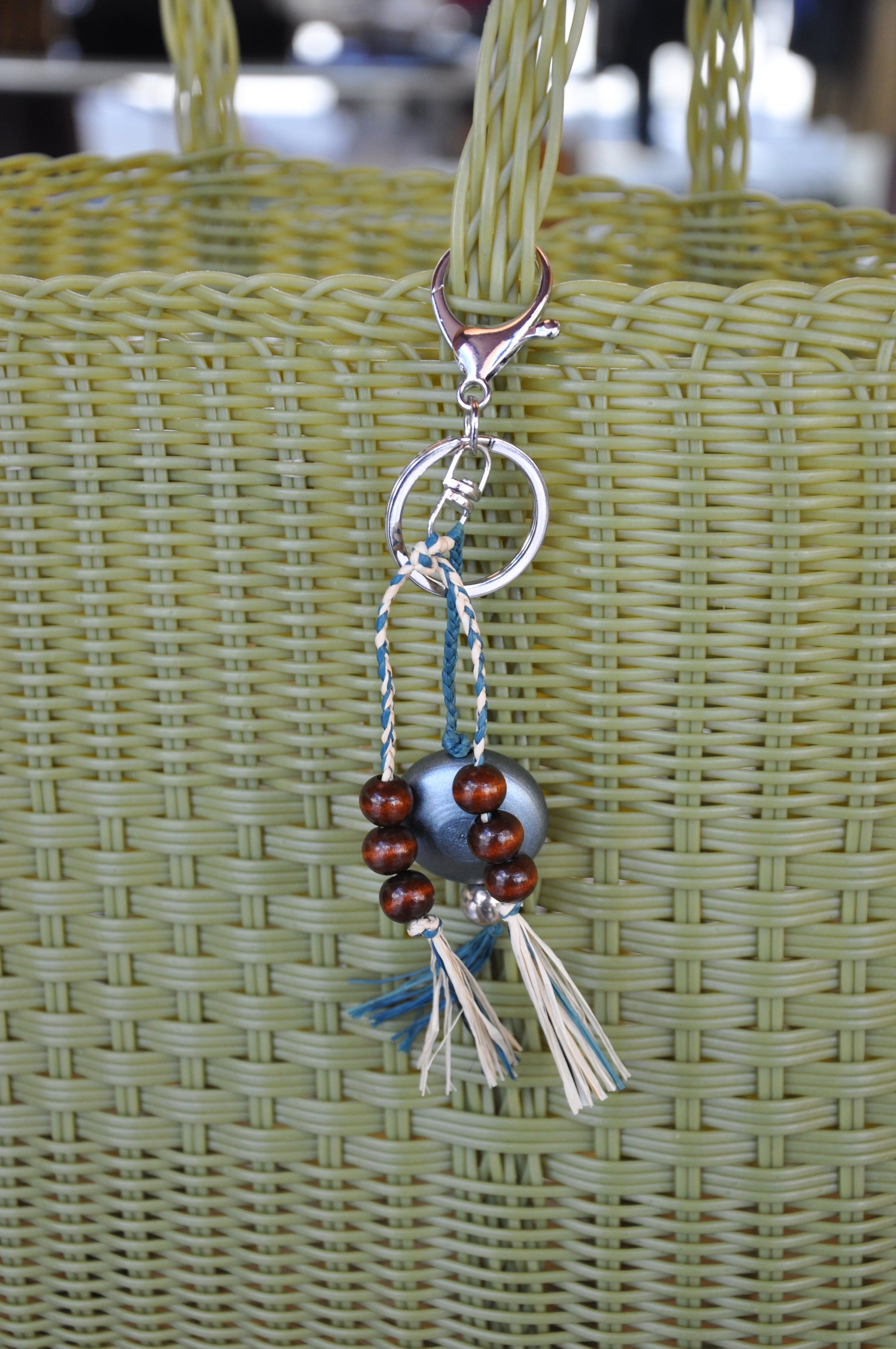 Bag Charms by Zizou - Hand-braided in Pōneke by Kat of Zizou, using hand-dyed raffia. This natural fibre brings texture, strength, and an easy warmth to each piece. Finished with a considered mix of beads and a secure clasp and key chain, ready to attach to any bag you choose.