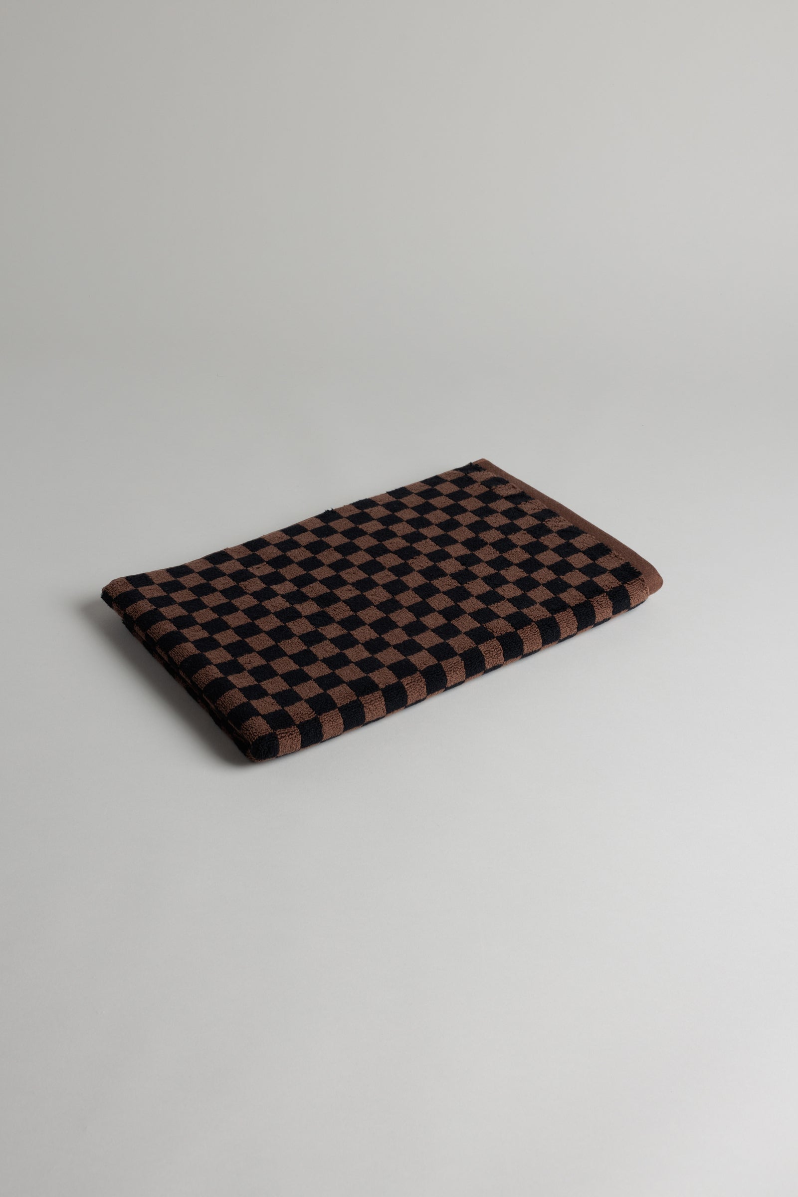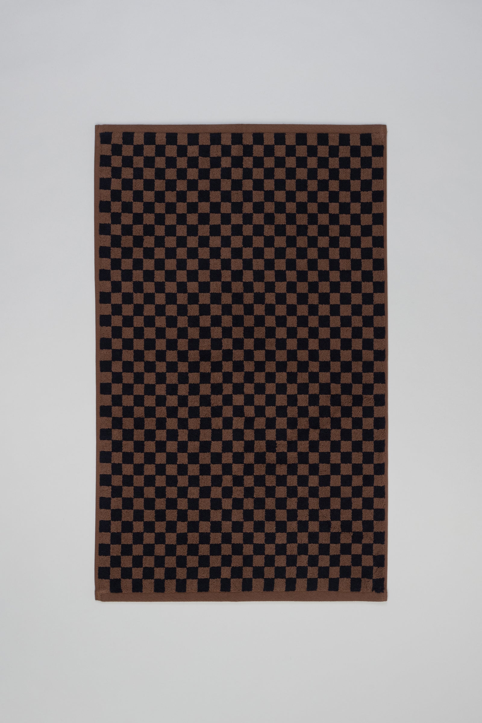 Beppu Bath Mat in Tabac & Noir is a 100% Organic Cotton bath mat. Luxuriously soft, Beppu features a playful checkerboard print synonymous with the BAINA brand. This bath mat makes for a subtle disruption in any bathroom or ensuite. 100% Organic Cotton Terry 950gsm for softness, absorbency and quick dry time.