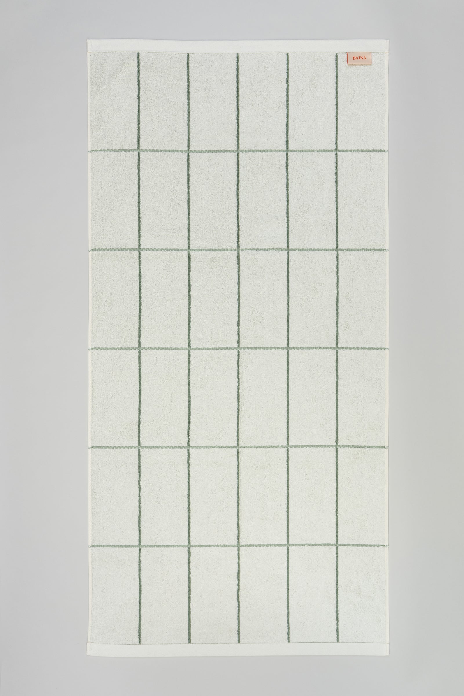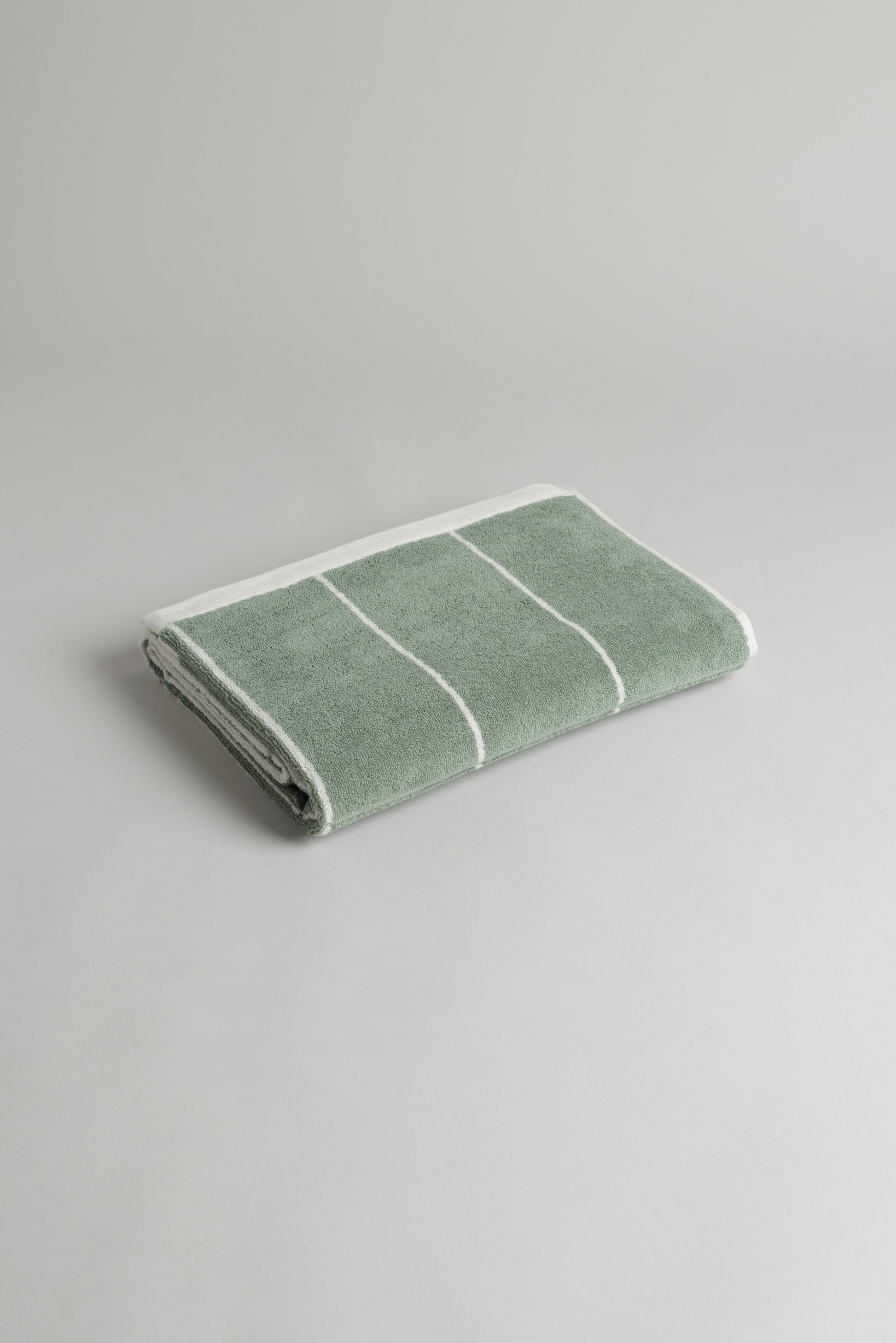 Bethell Bath Towel in Sage & Chalk is a 100% Organic Cotton bath towel featuring a grid pattern with stitching detail in contrasting colours of Sage & Chalk. Luxuriously soft, a simple way to elevate your daily bath time routine. 100% Organic Cotton Terry 600gsm for softness, absorbency and quick dry time