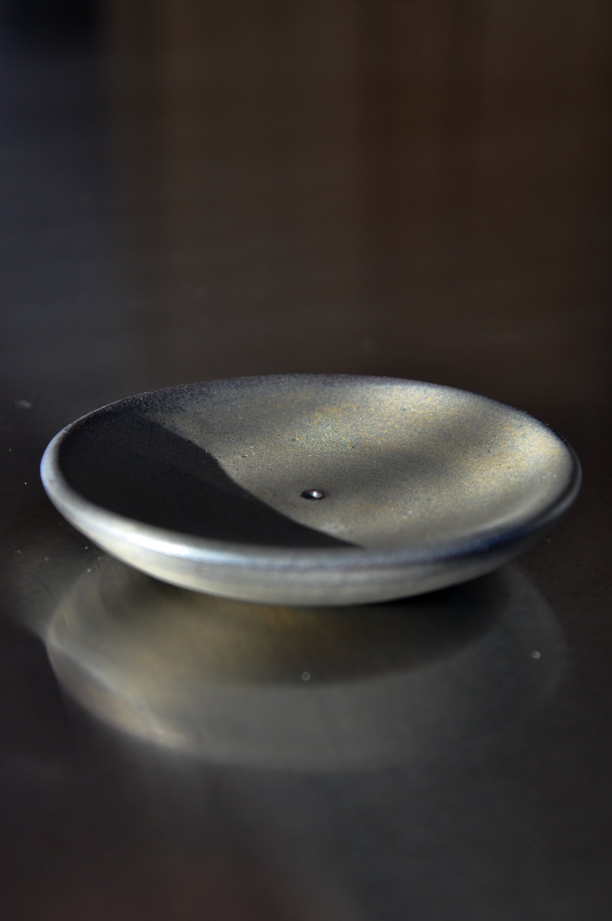 Brown Incense Holder - Hand-thrown using gritty grey clay sourced from Aotearoa, this piece features a matte dark ash brown glaze. Designed with a single central hole for your incense and a gentle curve to catch falling ash.