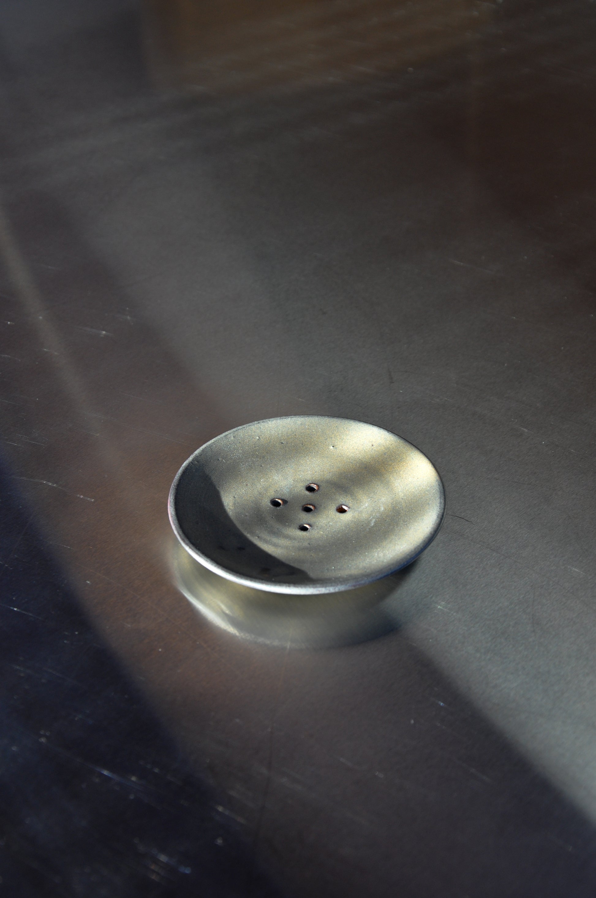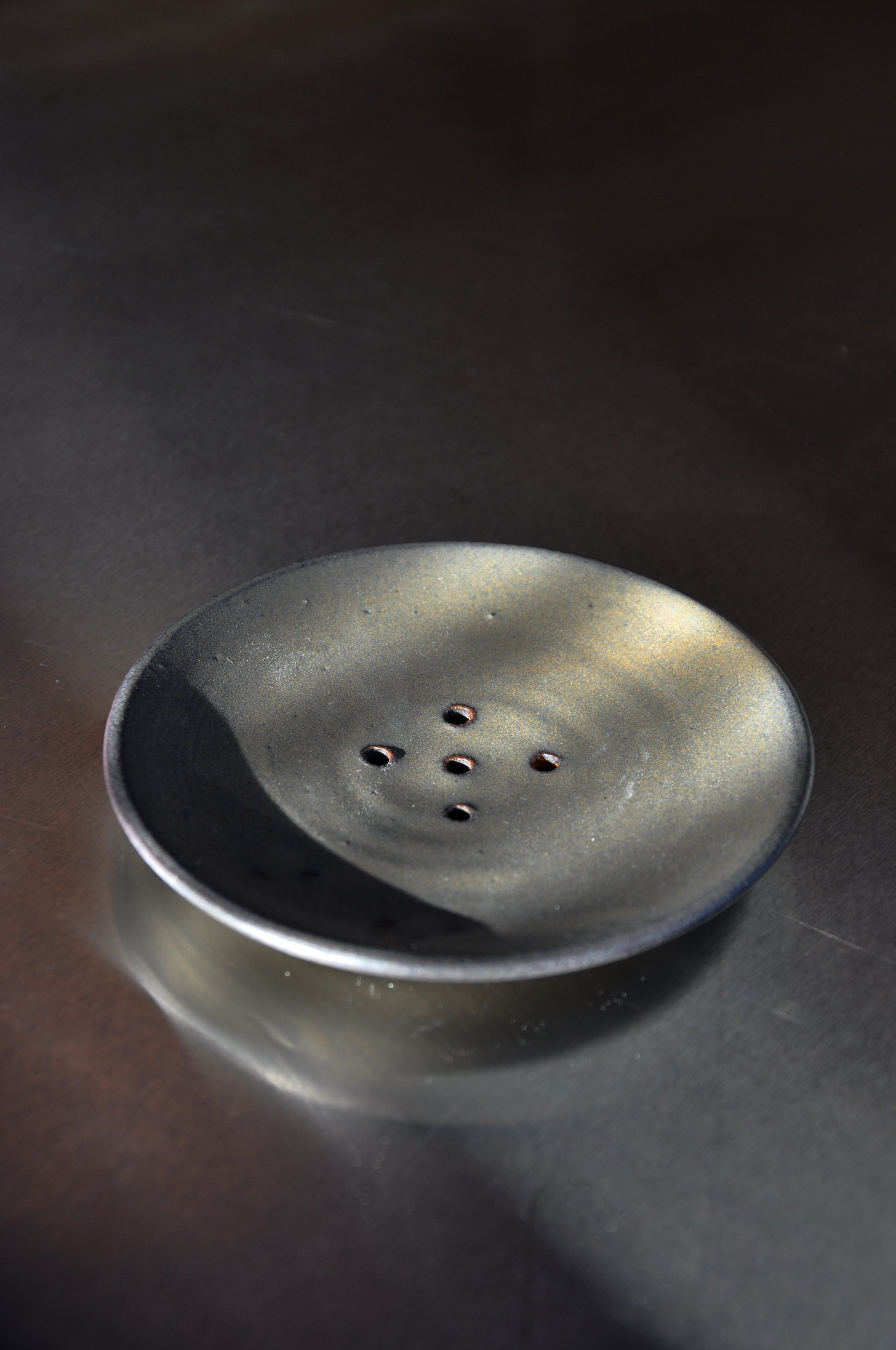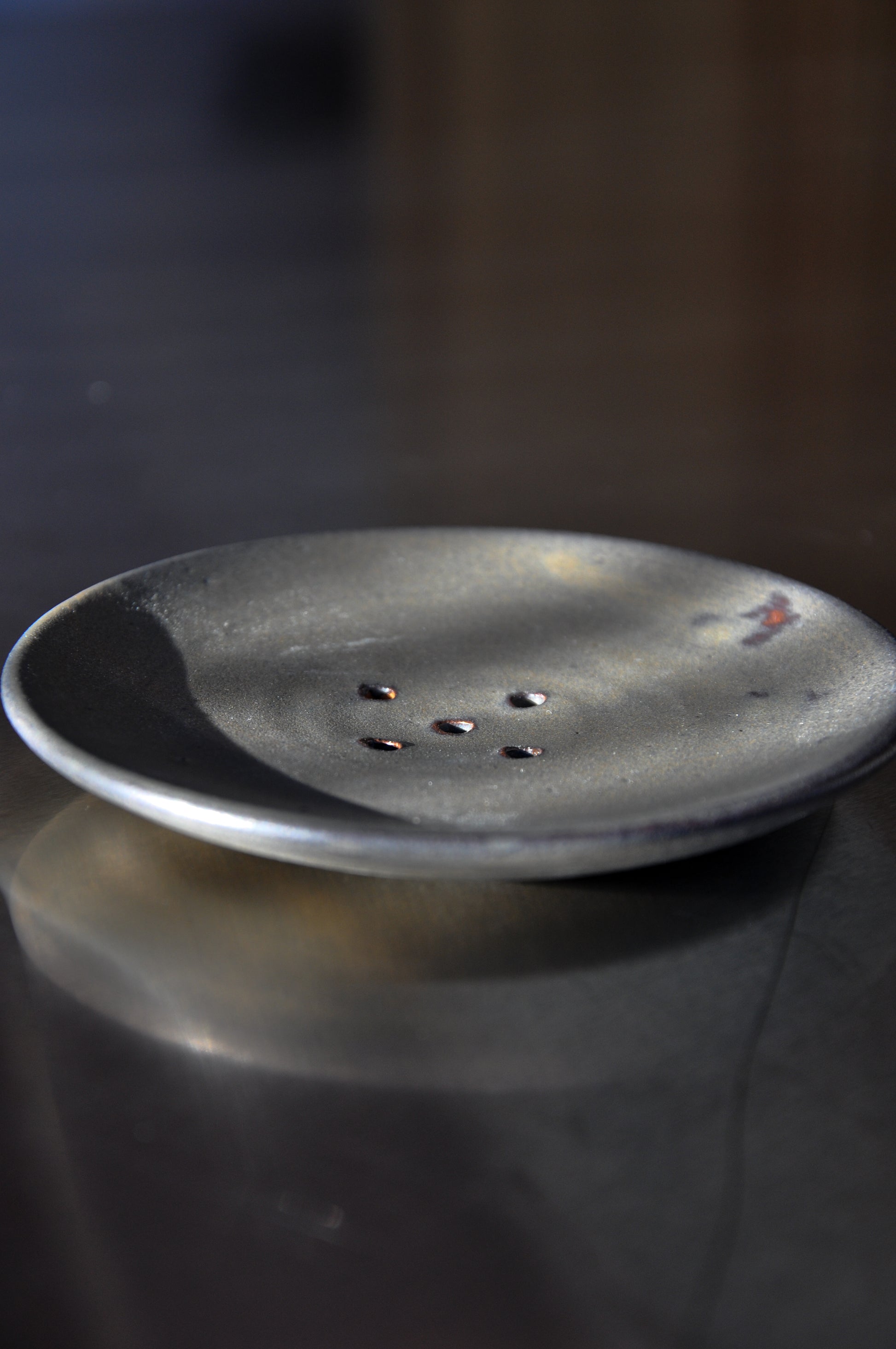 Brown Soap Dish - Hand-thrown using gritty grey clay sourced from Aotearoa, this piece features a matte dark ash brown glaze and five small drainage holes in the centre to keep your soap dry between uses.