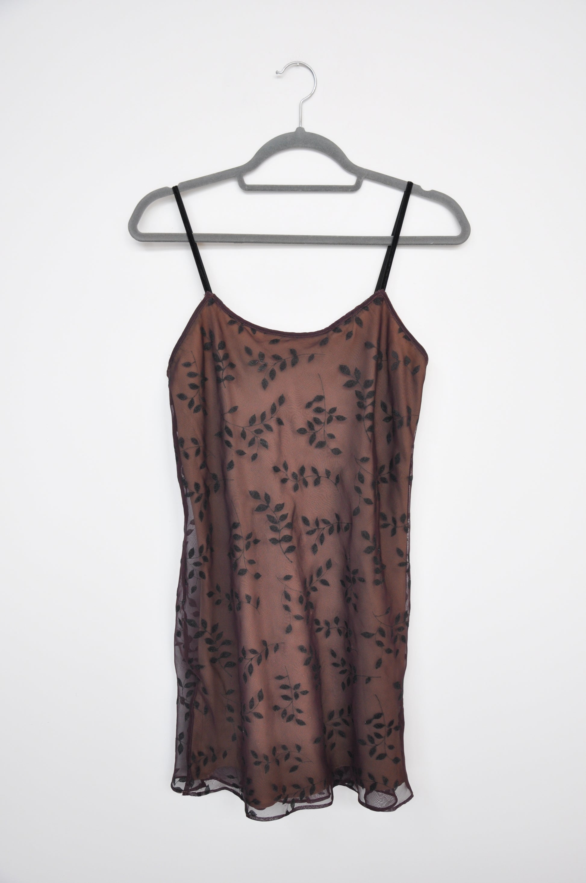Double layered slip. Scattered pattern leaf motifs. Thin Straps. By the brand Calvin Klein.