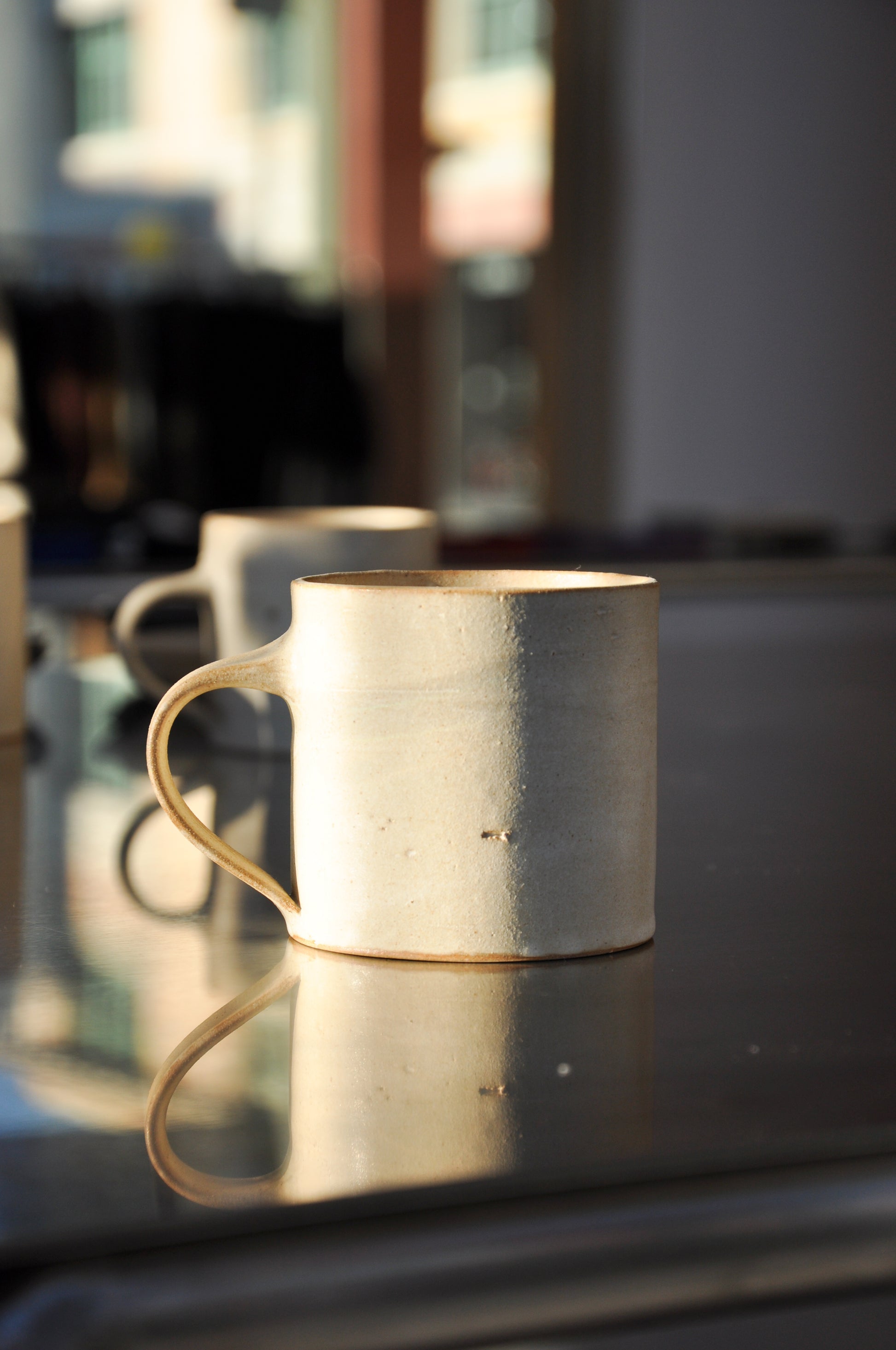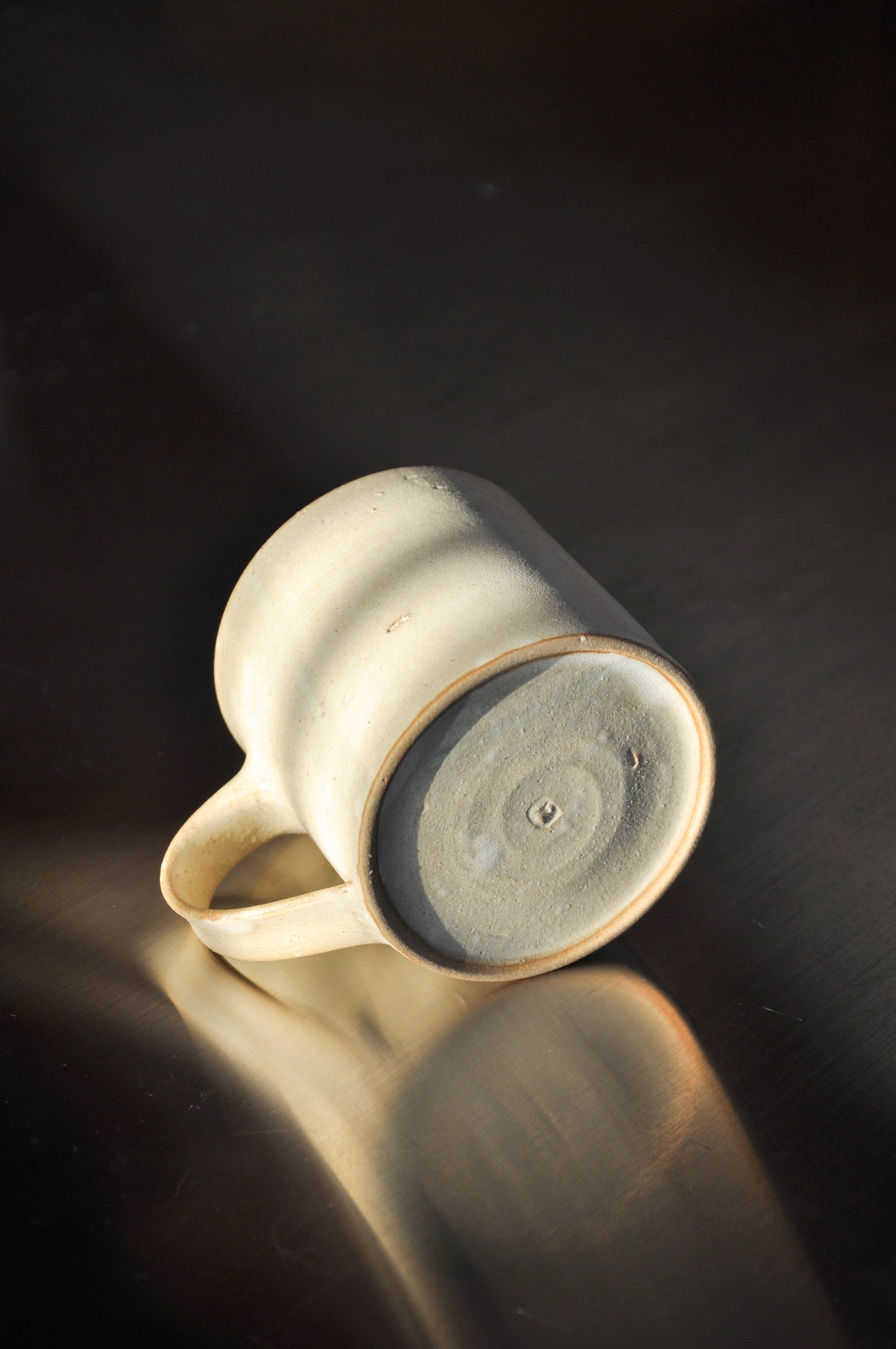 Cream Coffee Cup - Good size for a coffee or small cup of tea. Hand-thrown with gritty grey clay from Aotearoa. Approx dimensions: 8cm high x 7.5cm diameter. Dishwasher safe, hand washing recommended.