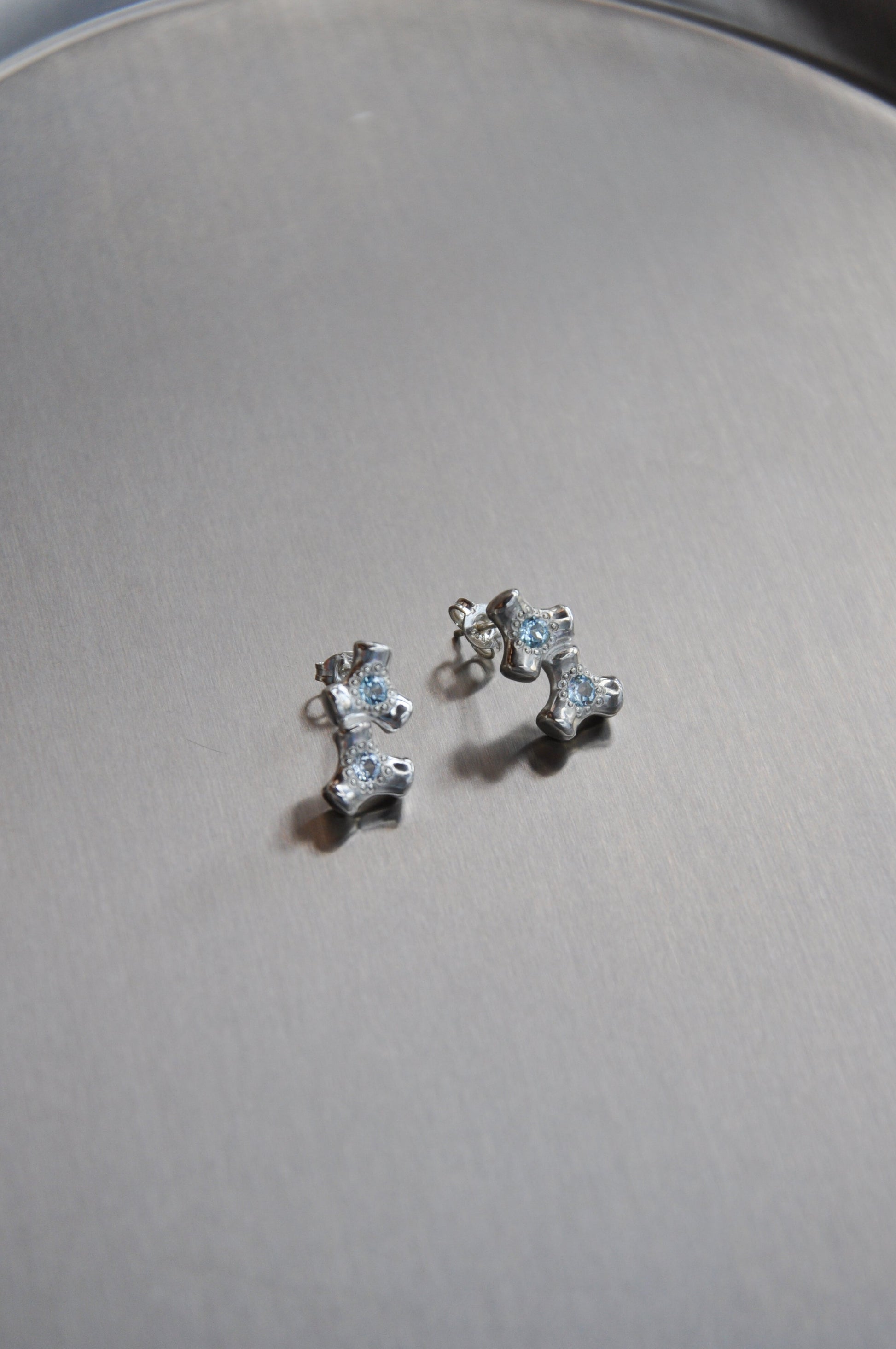 The Double Knuckle Single Stud in Topaz is a sterling silver standard post earring with a 3mm rhodonite garnet stone. The double knuckle stud is a sturdy and stylish earring that is perfect for everyday wear.