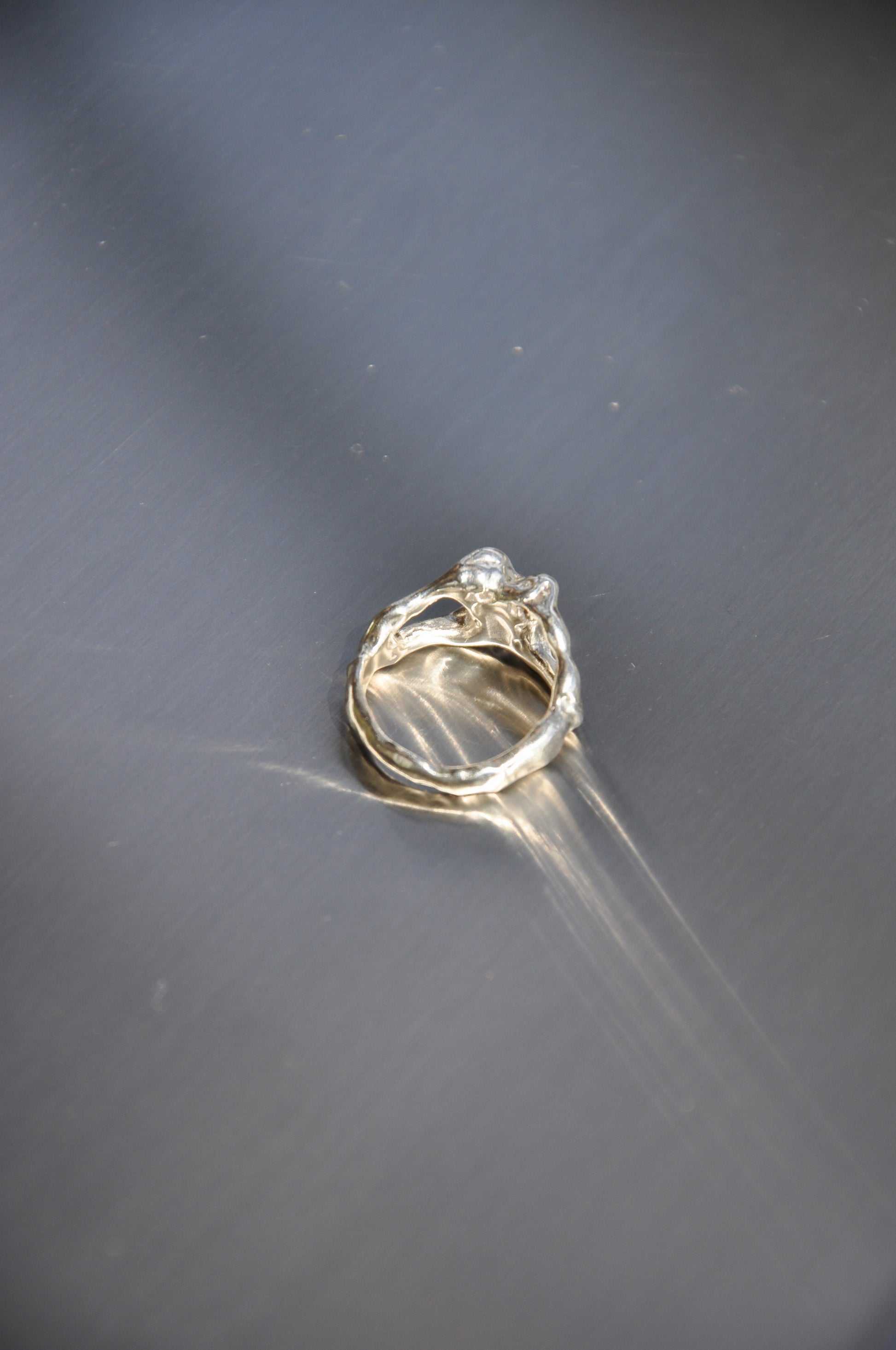Flower Called Nowhere Ring in Silver, a flower emblem upon a sterling silver band. Sculptured in wax, cast, hallmarked and finished by hand in Tāmaki Makaurau.