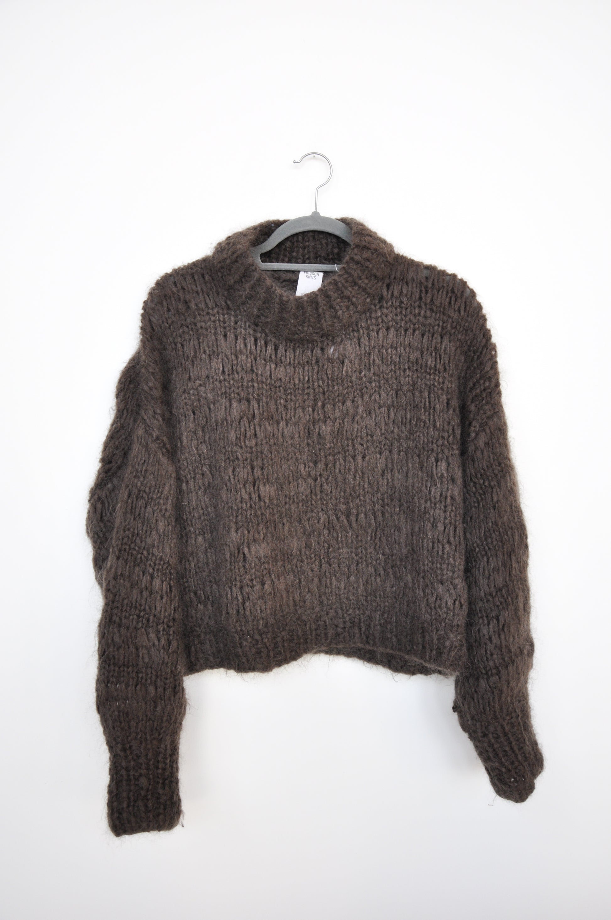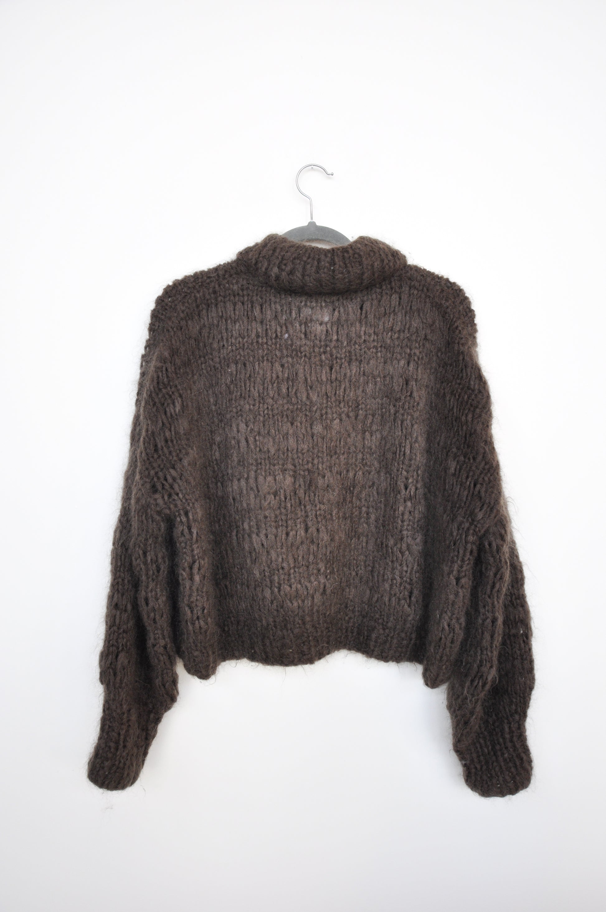 Handmade knitted jumper. High collar. Oversized fit. Cropped. By the brand Frisson Knits.