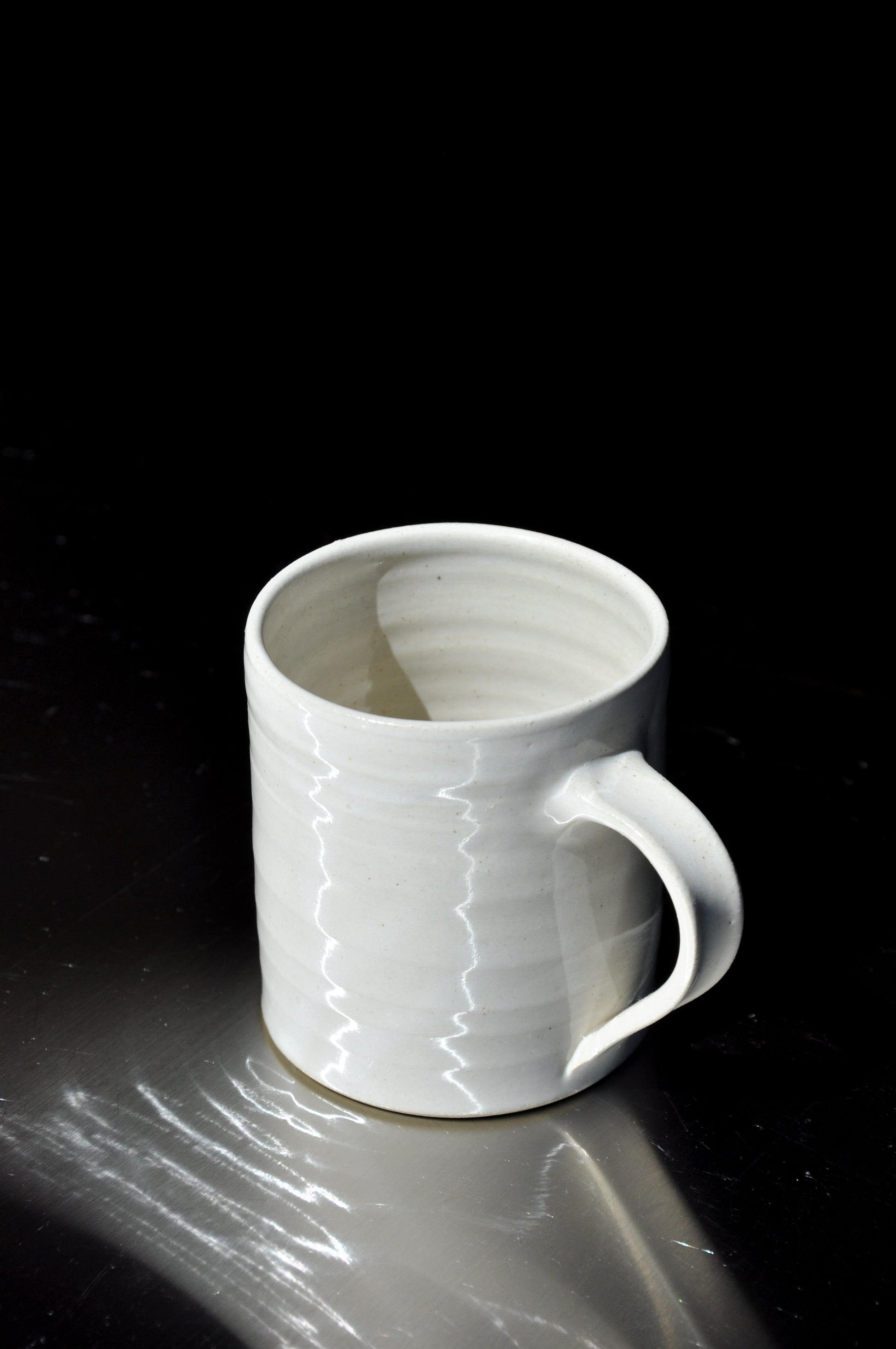 Gloss White Mug - Good size for a cup of tea. Hand-thrown with white clay from Aotearoa. Glossy white glaze. Approx dimensions: 9cm high x 7.5cm diameter.