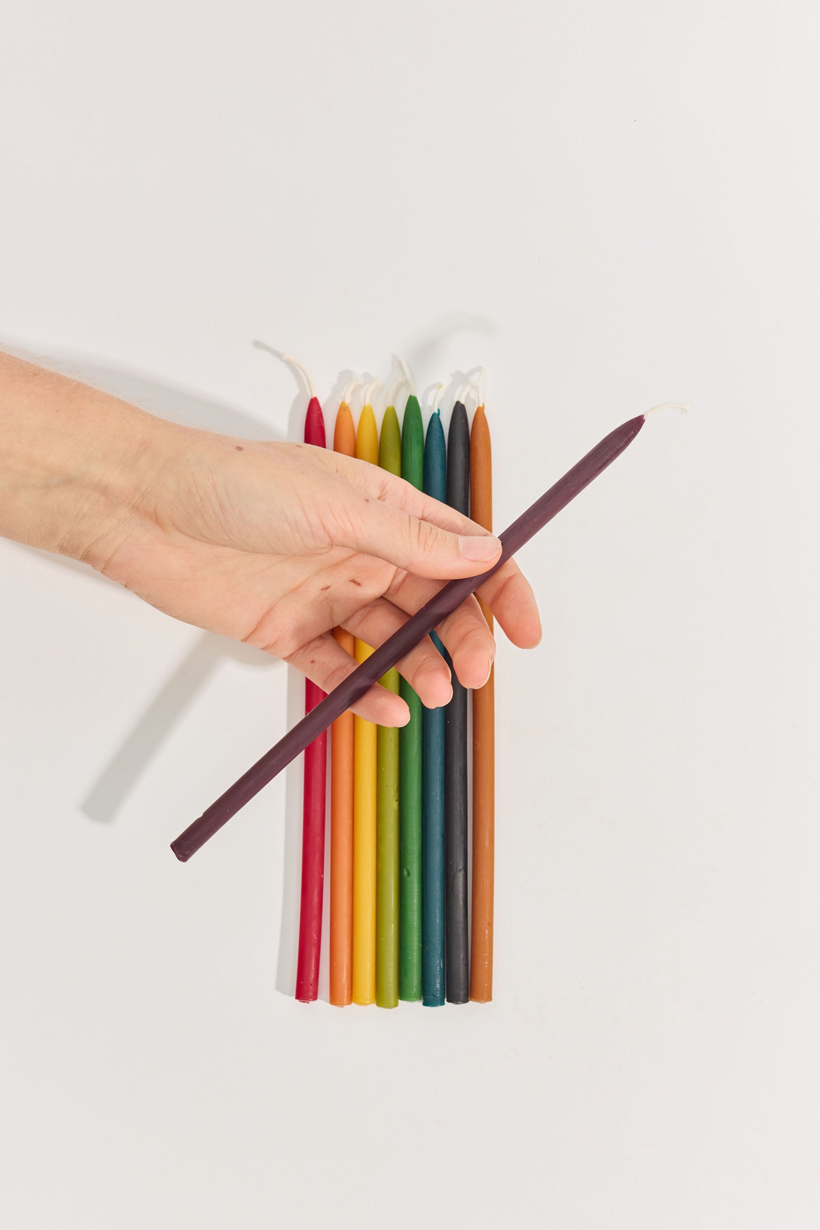 Honeybell Candle in Merlot Purple is an all-time favourite. Impossibly tall, slim and so elegant. These candles look beautiful on desserts and cakes. They can be used over and over again for birthdays as they have such a long burn-time and are completely non-toxic.