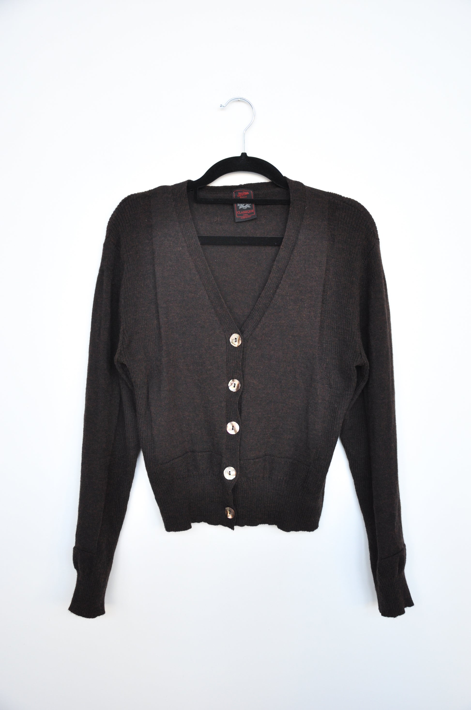 Long sleeve cardigan. Shell buttons. Ribbed at the base and cuffs of the cardigan. V neckline. By the bran Jean Paul Gaultier.