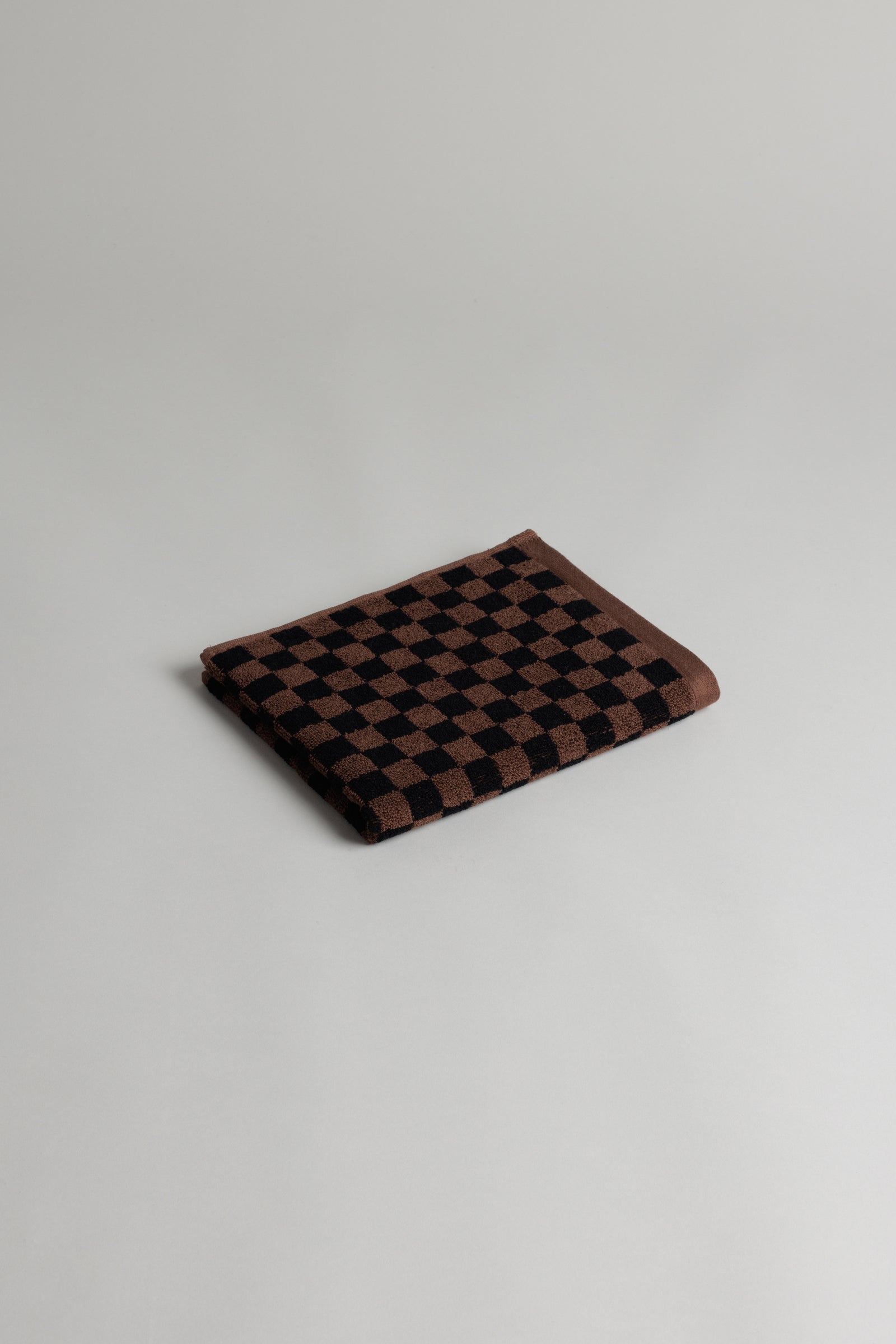Josephine Hand Towel in Tabac & Noir is a 100% Organic Cotton hand towel. Luxuriously soft, Josephine features a playful checkerboard print, synonymous with the BAINA brand. This hand towel enriches your bathroom with a feeling of luxe and heritage. 100% Organic Cotton Terry 500gsm for softness, absorbency and quick dry time.