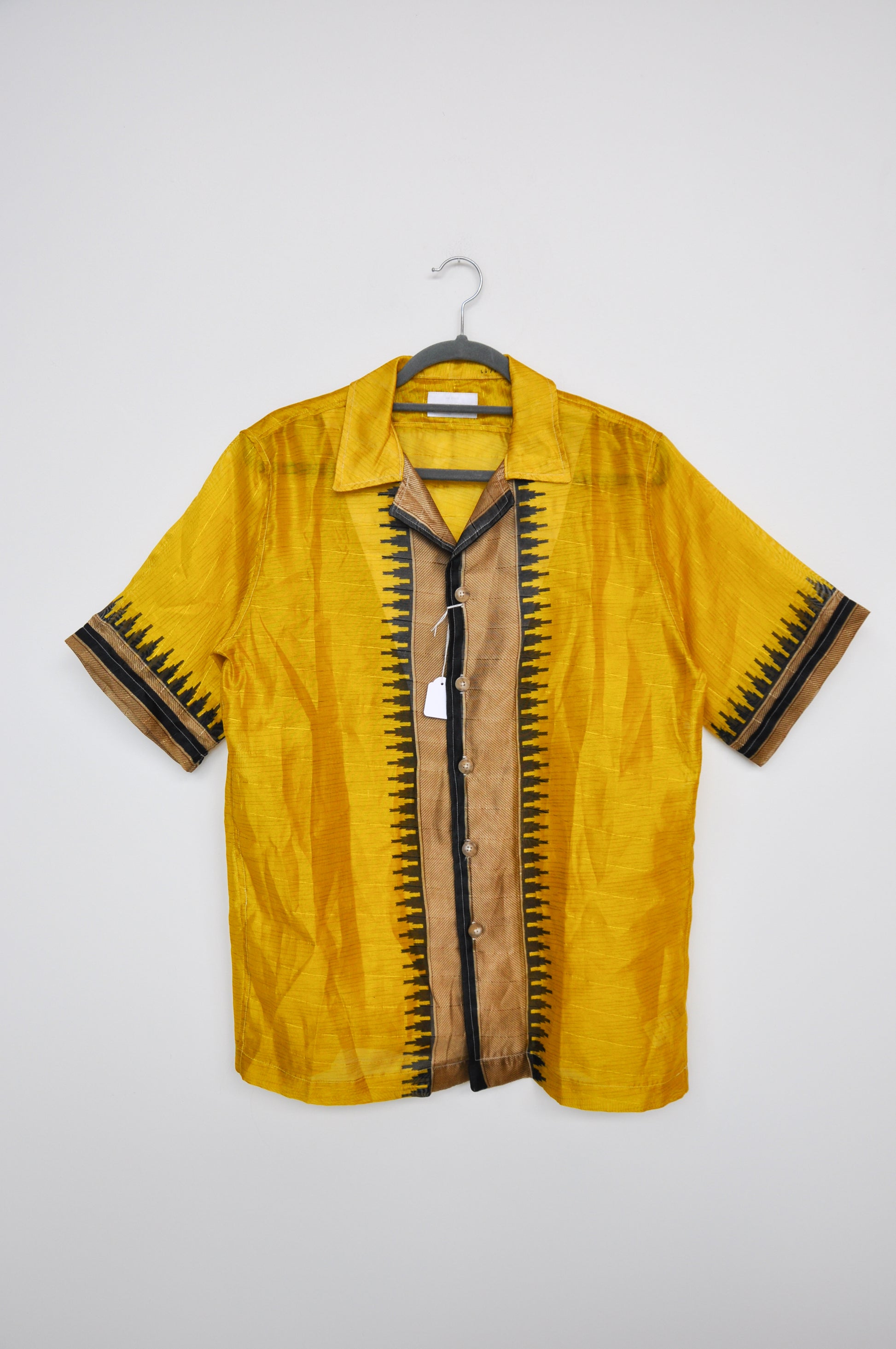One of one shirt, button down featuring a black and brown pattern through the front of the shirt. Loose fitting prefect for summer. Made by NZ brand Lucky Dip in size Large (mens)