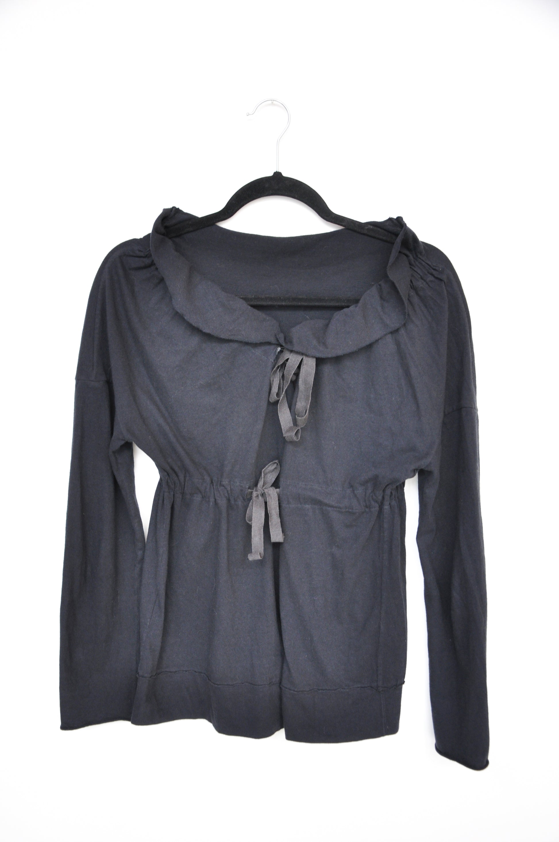 Long sleeves with tie up bow detailing. Can wear both ways around, ties at the front or back. Wide neckline. Long sleeves. By the brand Marni.