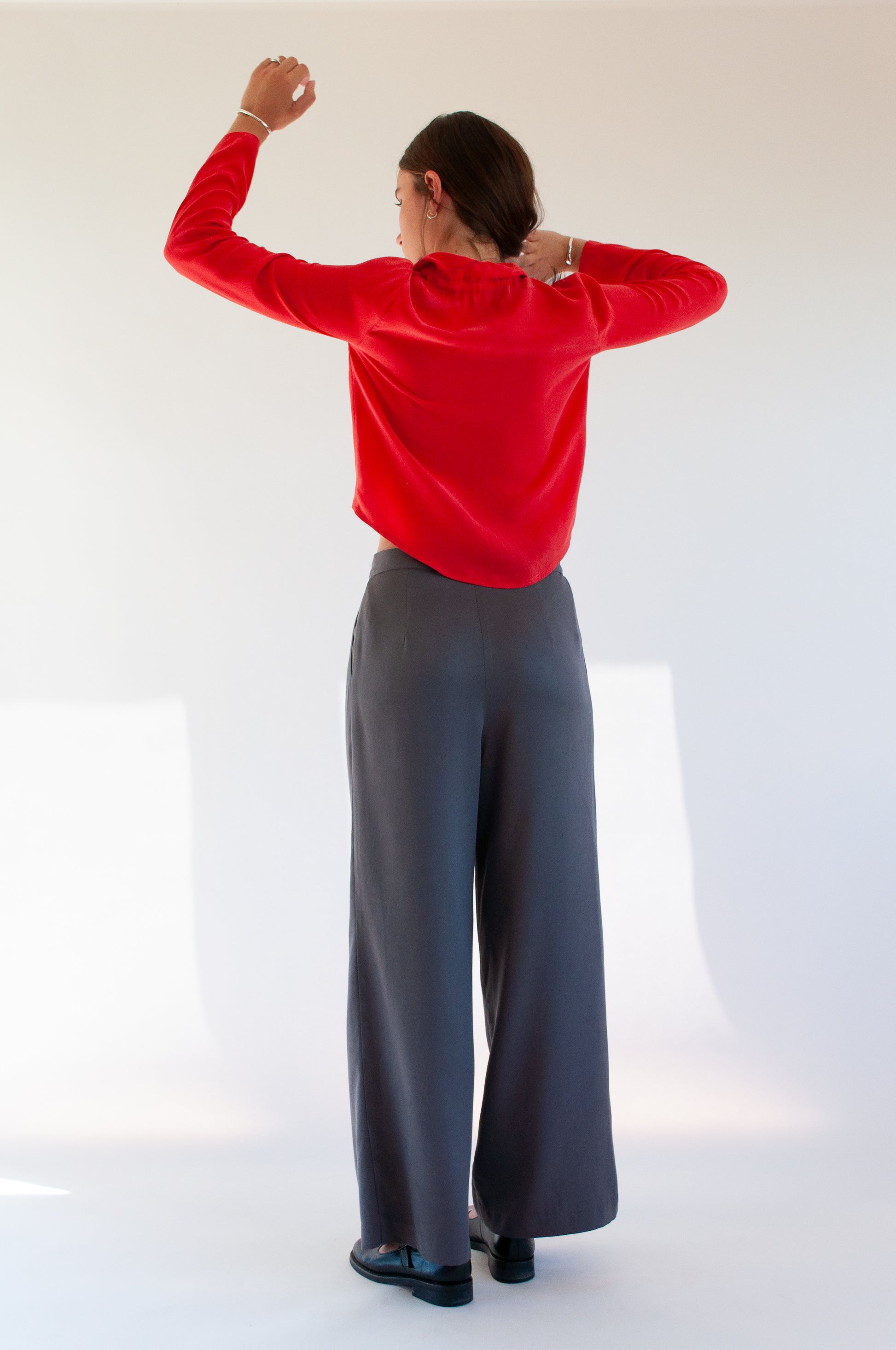 The Me Trouser is a timeless blend of formal and everyday comfort. Thoughtful design details include double front pleats, side-angle pockets, and back waist darts for functionality and fit. The fly and asymmetric waistband and are fastened with corozo nut buttons and a sustainably farmed mother-of-pearl shell button from the Pacific. Dress them up or wear them casually. For a lower-slung fit, consider sizing up.