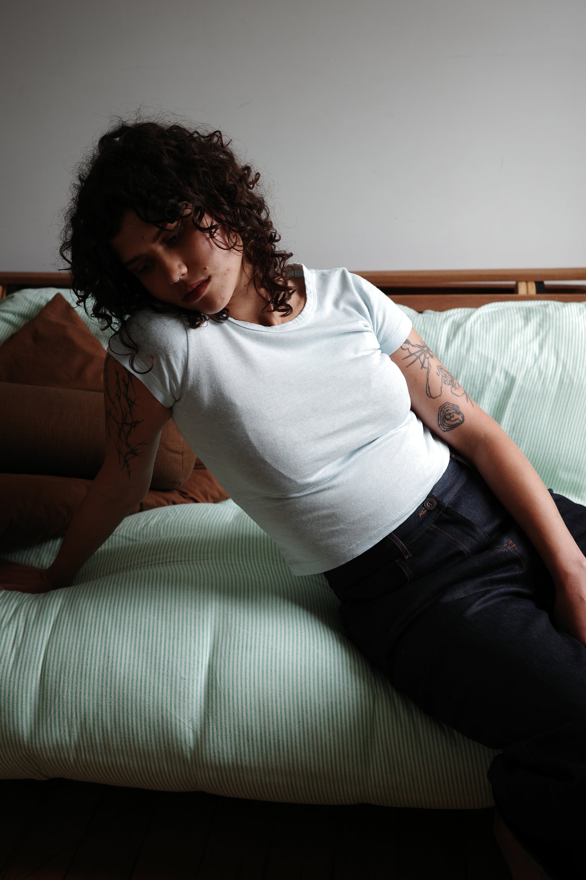 Mini Tee in Ice a vintage inspired, shrunken fit - cap sleeves and slightly cropped body