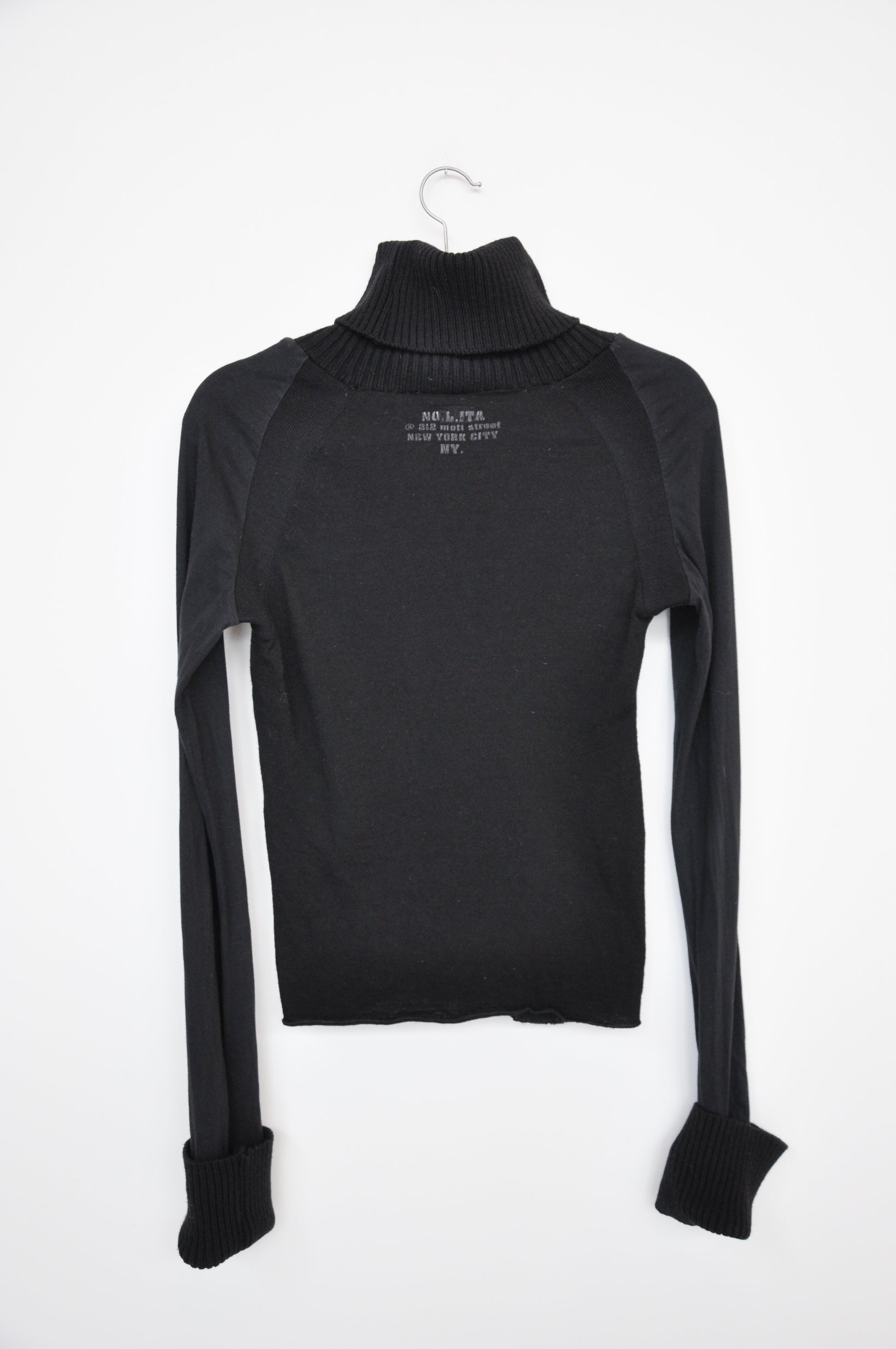Long sleeve top. Thick ribbed turtleneck and cuffs. By the brand Nolita.