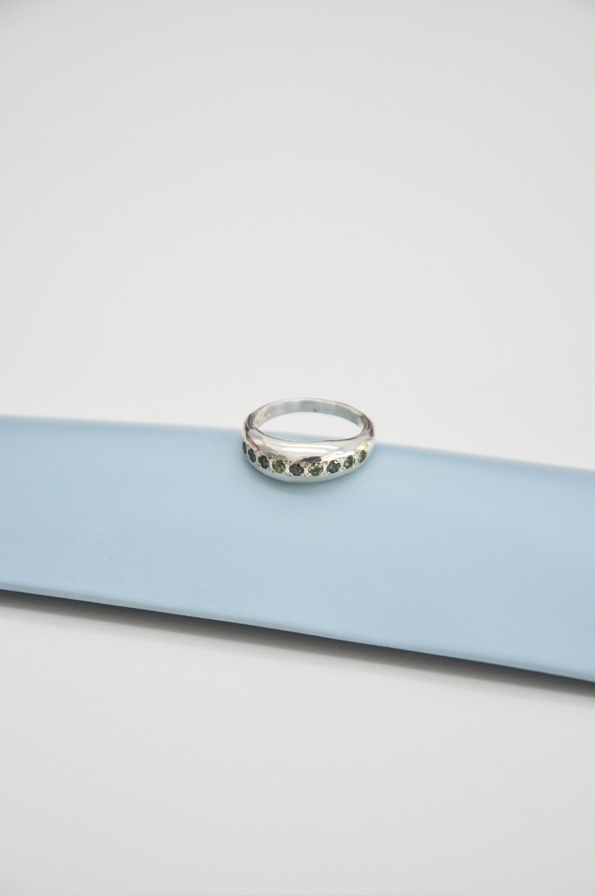 Nuque Ring with Green Sapphires in Silver - The classic Nuque ring set with a line of round sapphires. Green bead set sapphires - size O 1/2