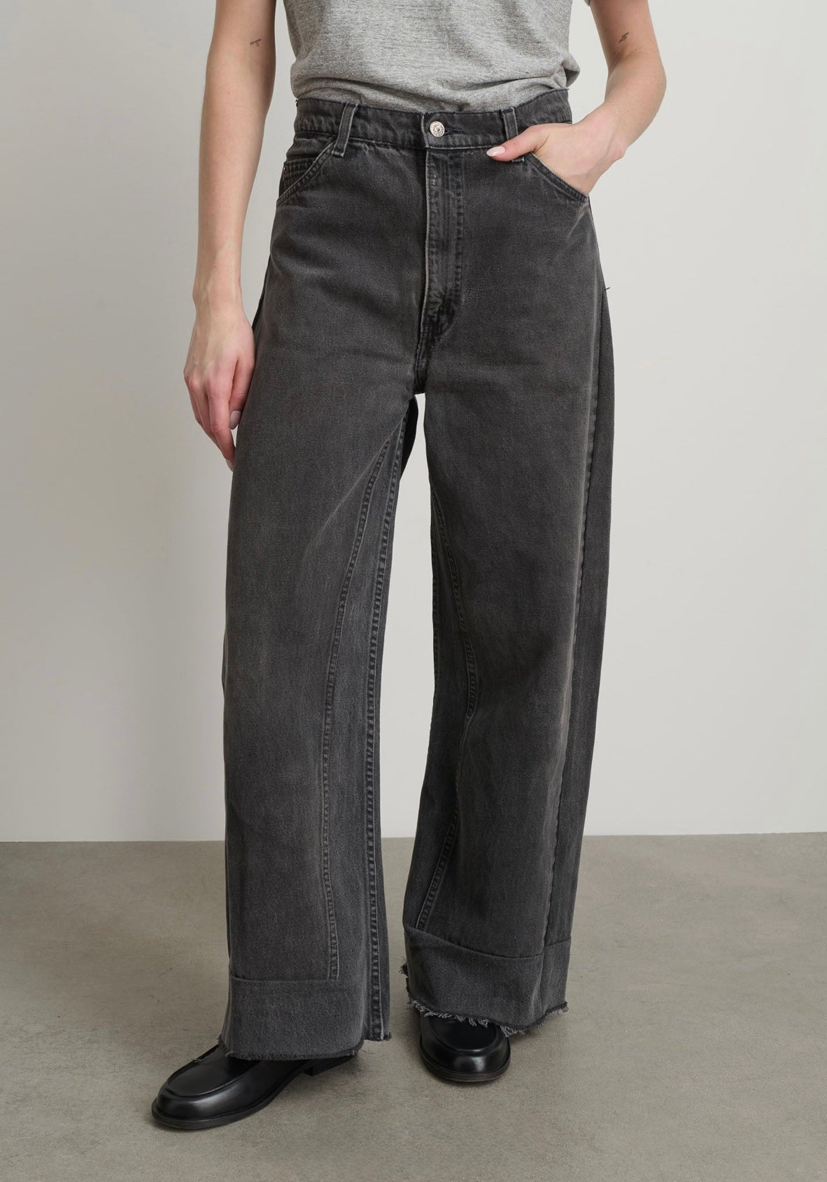 Reworked Vintage Culotte in Vintage Black, a cool, mid rise fit in antique denim. Each pair is one-of-a-kind and will vary in shade, caste, colour and fade pattern as they are made with authentic vintage Levi's 505’s and 517’s, collected in the American West.