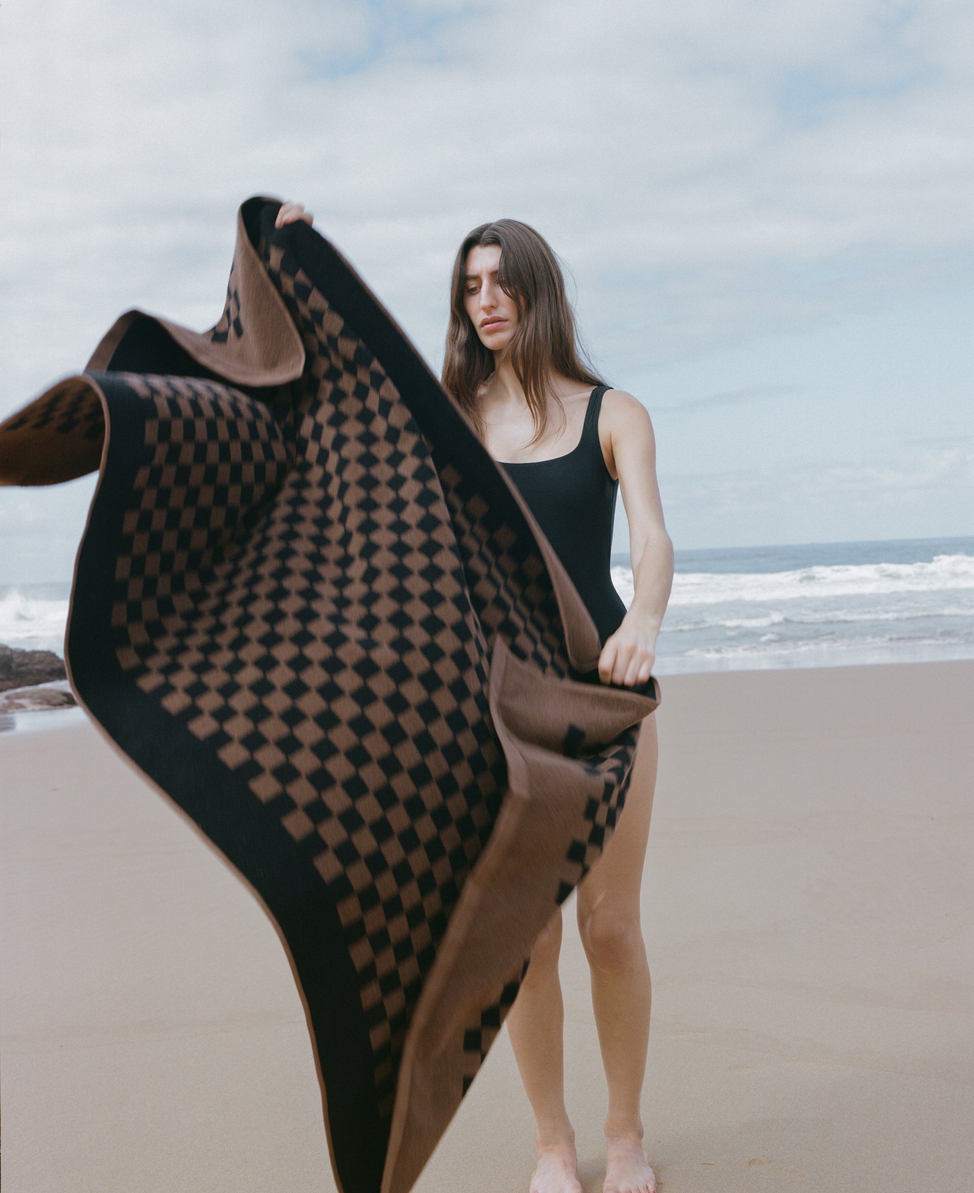 Roman Pool Towel in Tabac & Noir is a 100% Organic Cotton pool towel or beach towel. This playful towel in checkerboard print is synonymous with the BAINA brand features a reversible colour-way. Contrasting against Noir, the rich Tabac checkerboard evokes a feeling of nostalgia within any bathroom or on any excursion. 100% Organic Cotton Terry 600gsm for softness, absorbency and quick dry time.