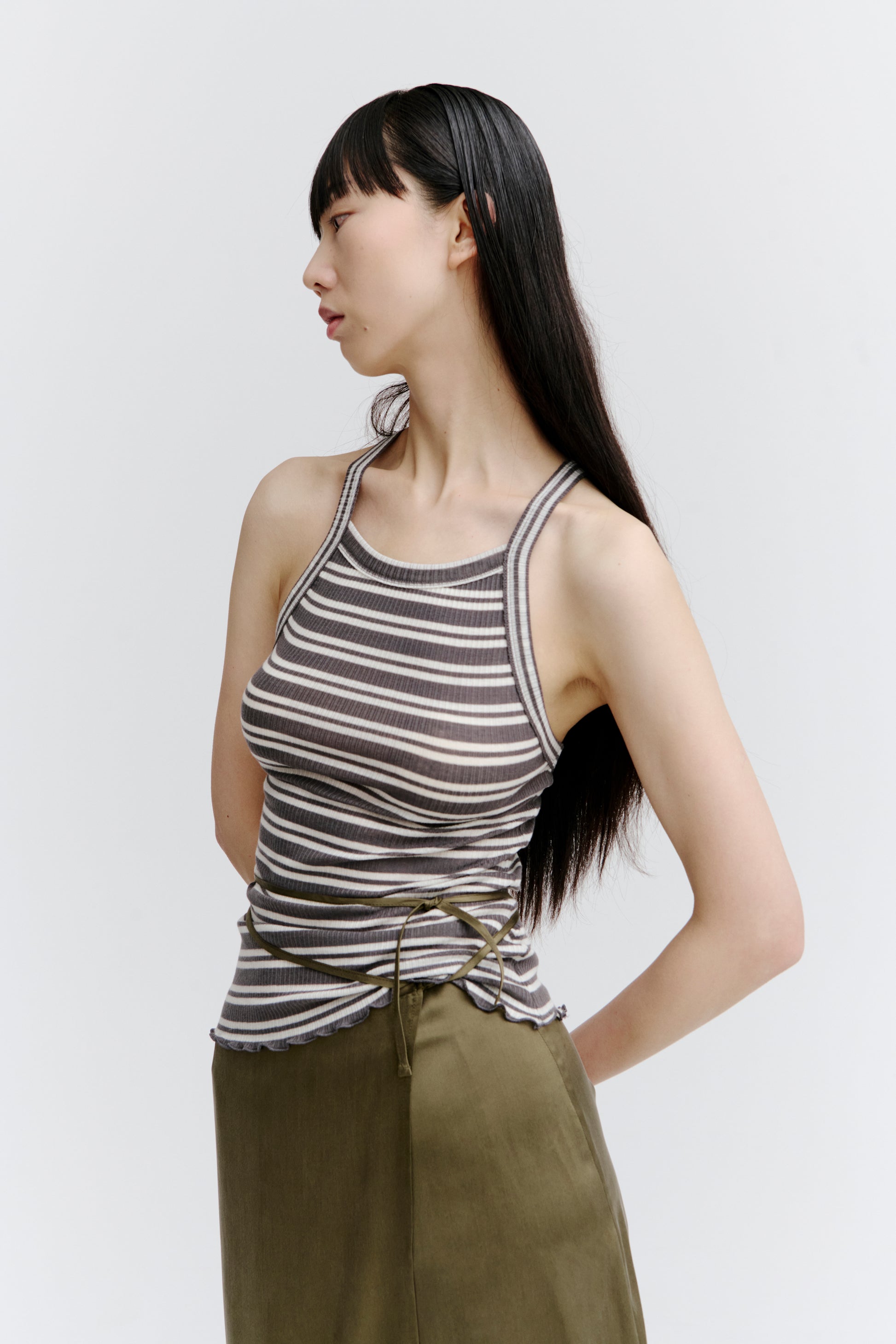 The Segment Singlet in Stripe is a longline singlet crafted in soft ribbed jersey, with the addition of cashmere and silk fibres for a subtly luxurious base layer.