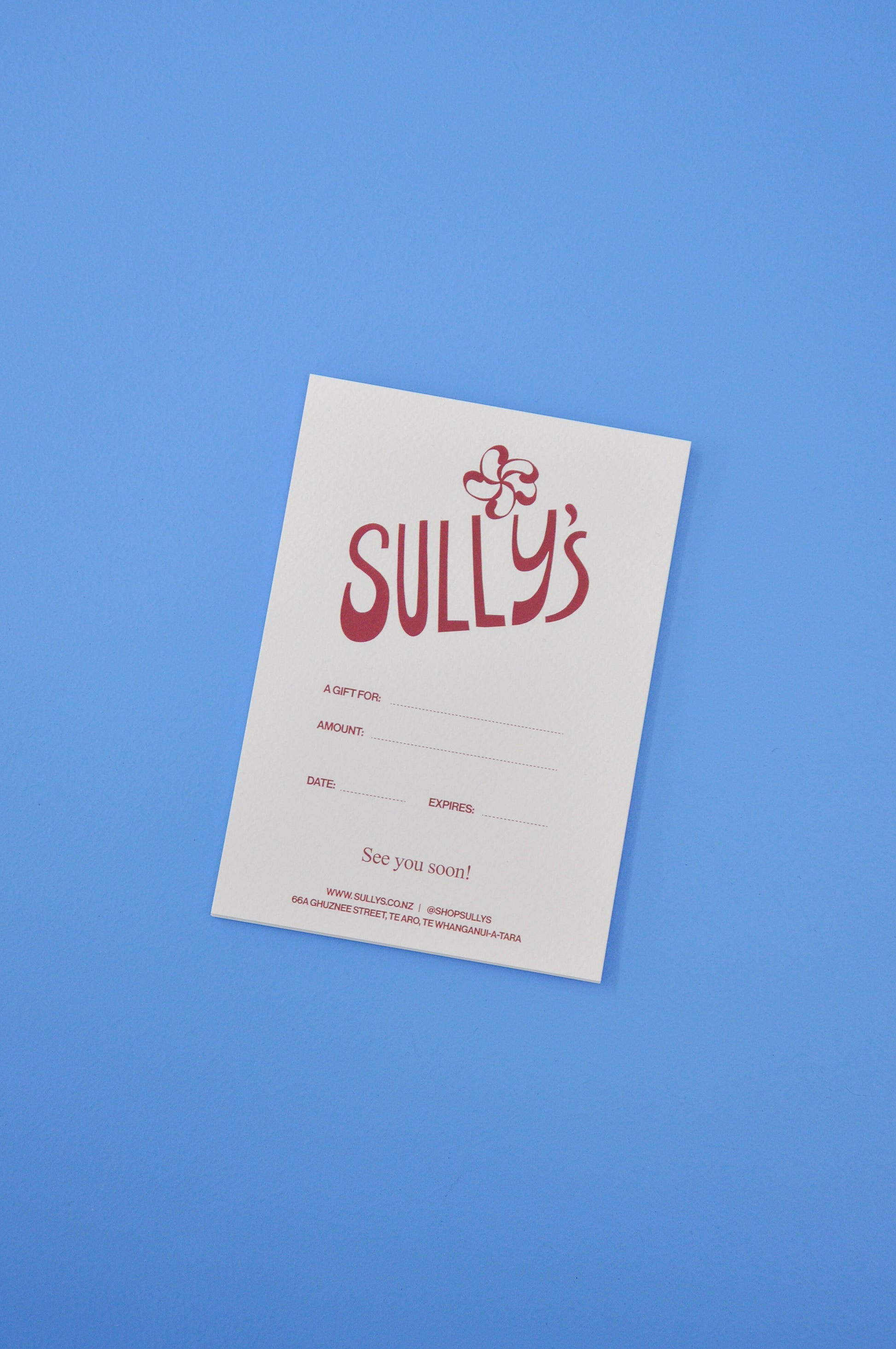 If the amount you are wanting to purchase isn't available please get in touch with us at hello@sullys.co.nz for another amount. Gift cards are non refundable.