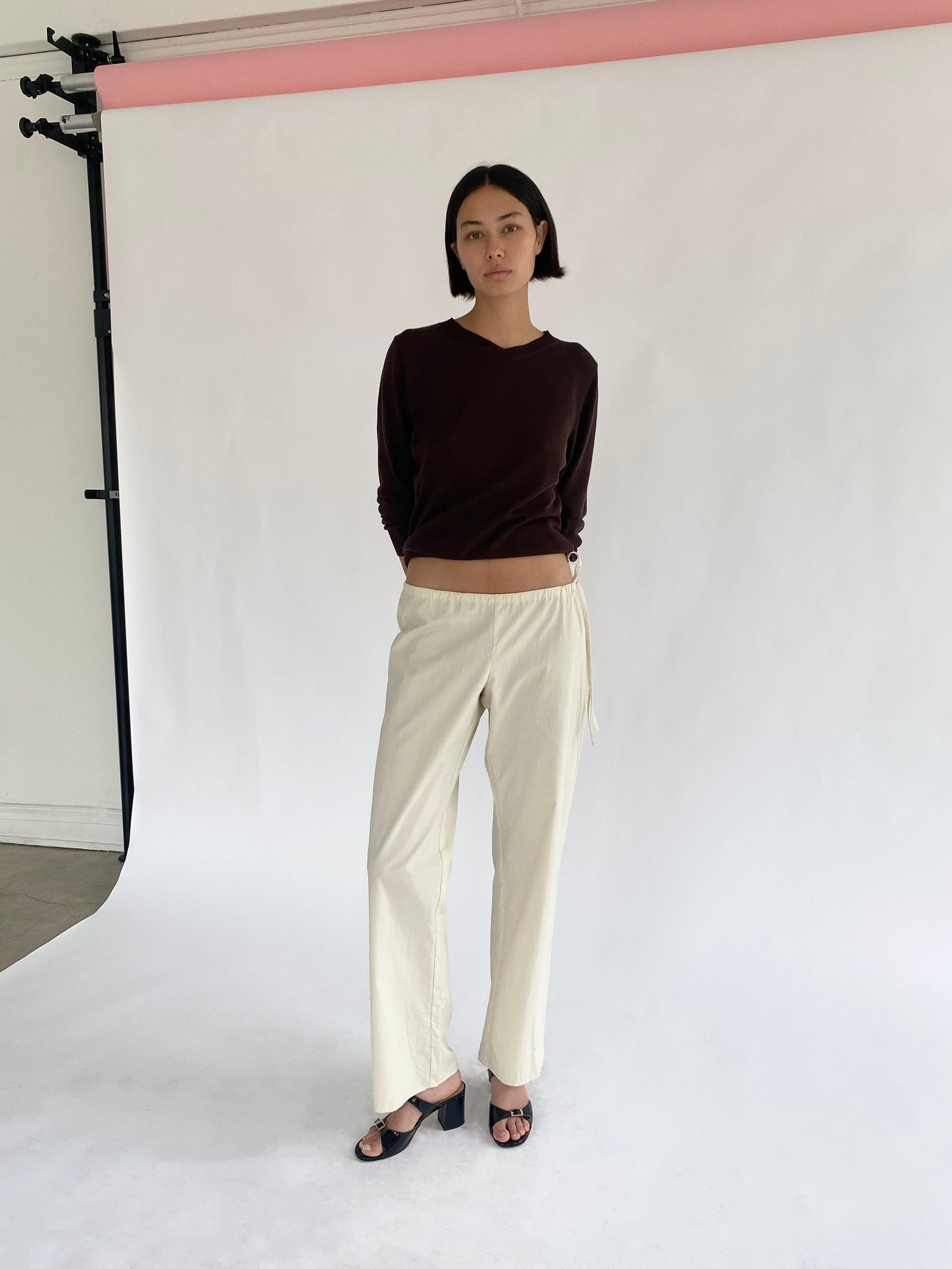Relaxed and chic, these 100% cotton poplin pants are designed with a straight cut that flow into a full-length silhouette. They Feature a low-rise waist and an adjustable tie for a custom fit.