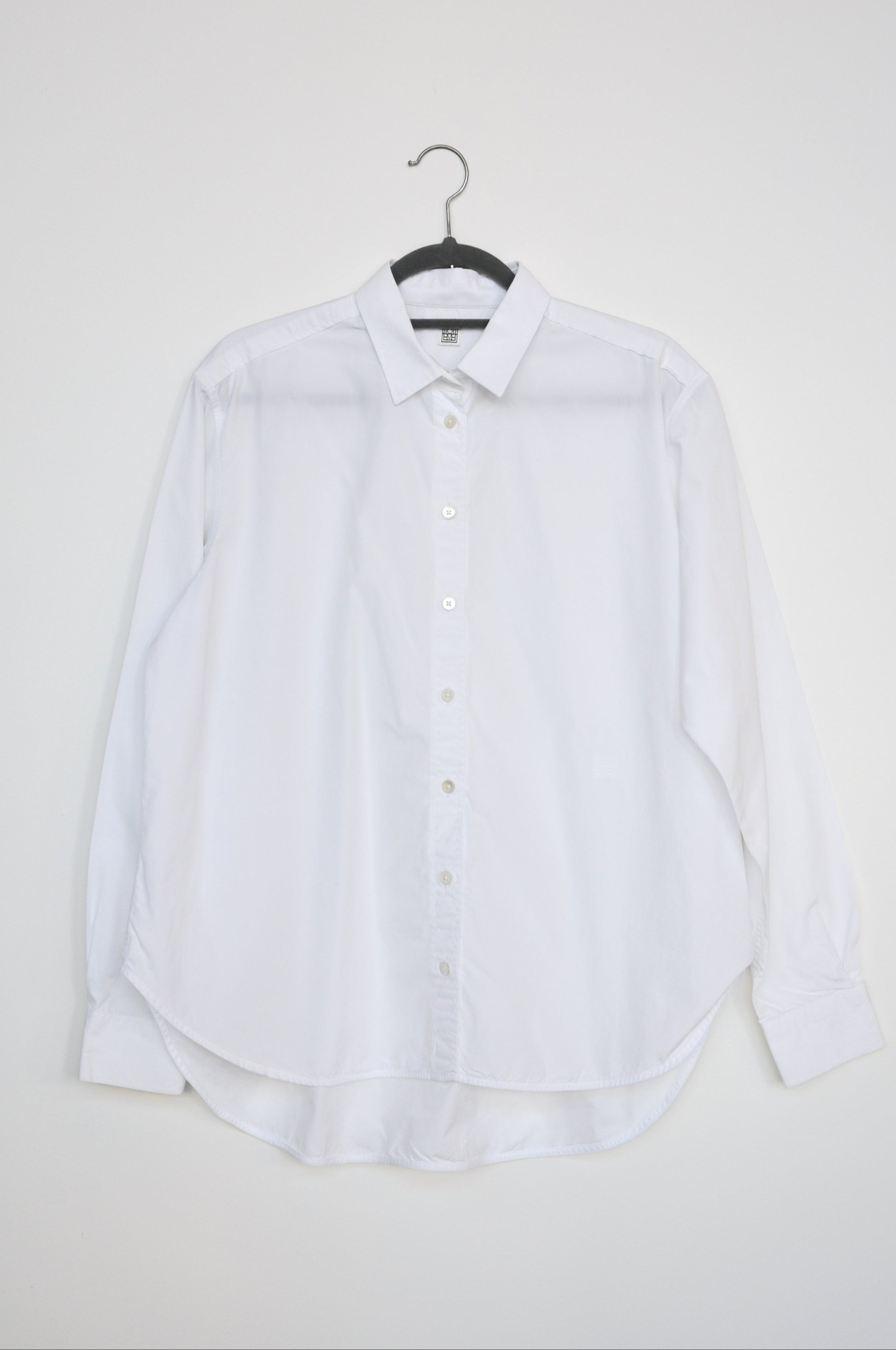 A white collared shirt offers a smart, classic appearance, and TOTEME knows how to get the fit and feel just right. Designed in an oversized shape, this style is made from organic cotton-poplin that's subtly embroidered with the logo and has a back pleat. Partially tuck the curved, slightly asymmetric hem into jeans or tailoring.