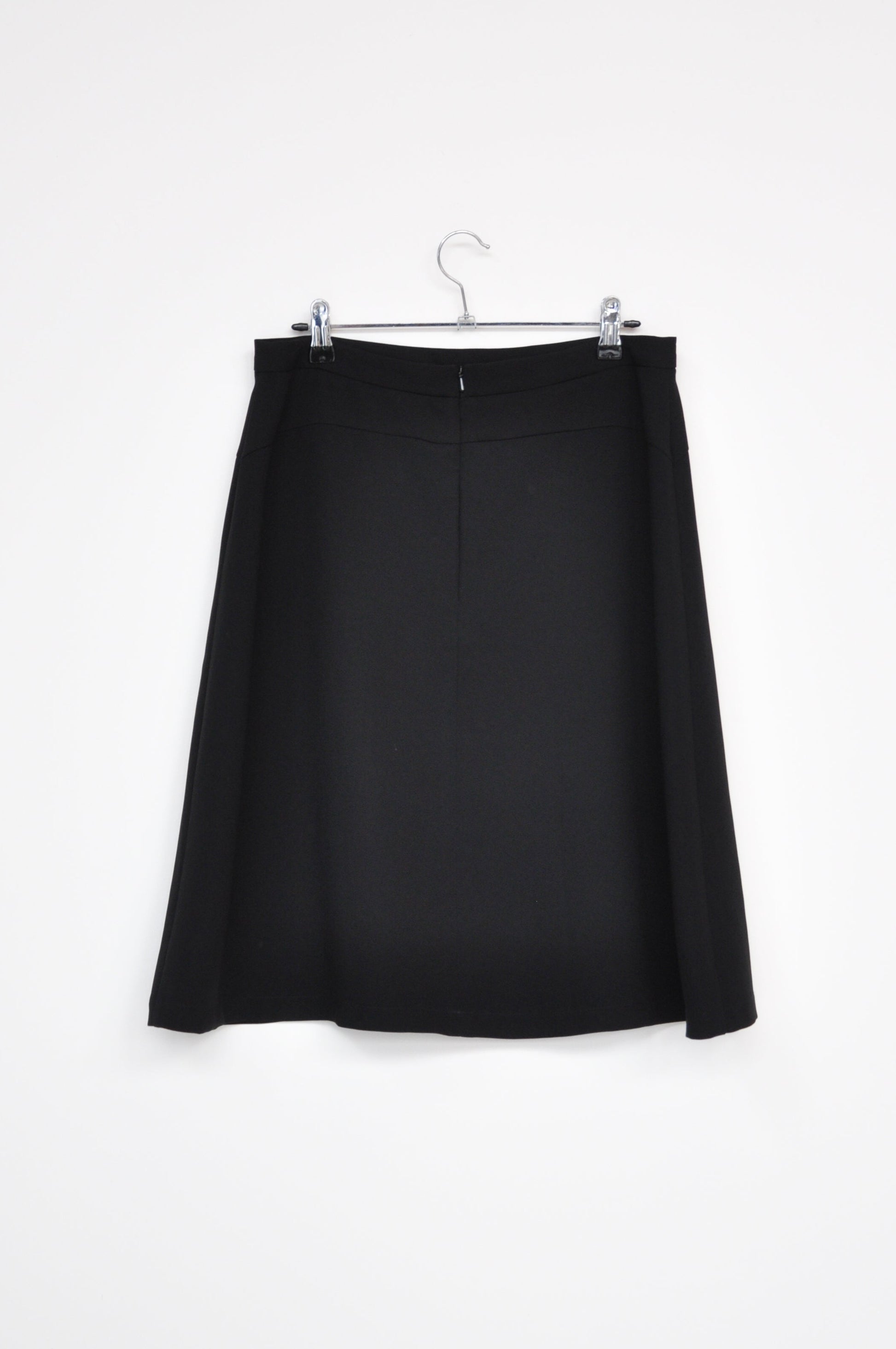 Mini skirt. Hidden zip closure at the back down the seam. The skirt flows out at the bottom. By the brand Twenty Seven Names.