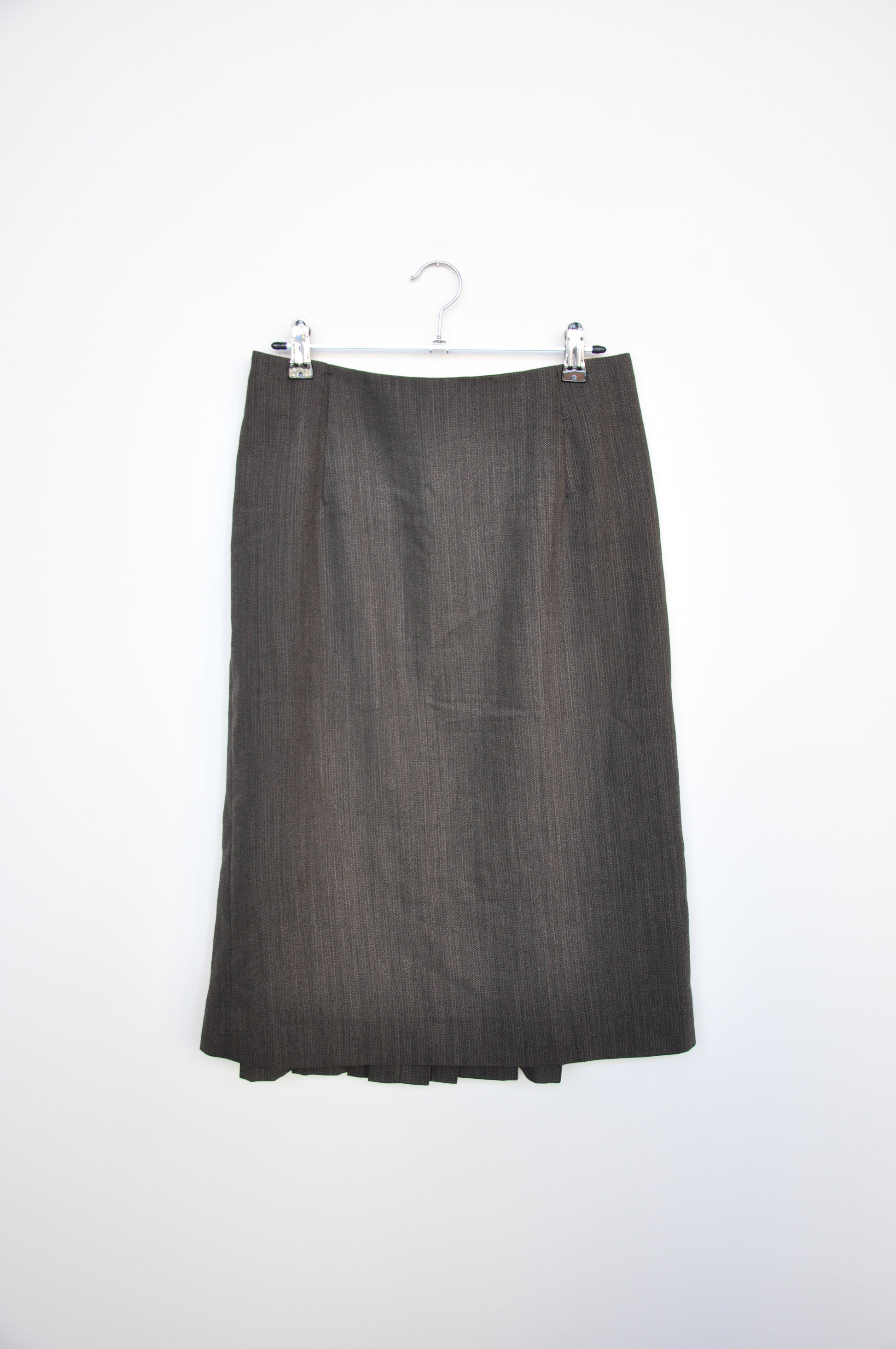 A classic pencil skirt with pleating details down the back. Zip closure at the back. 100% wool made in New Zealnd by Zambesi